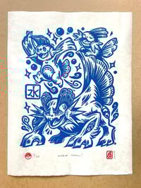 Handprinted with Handmixed Blue Ink on Japanese Kitakata Paper